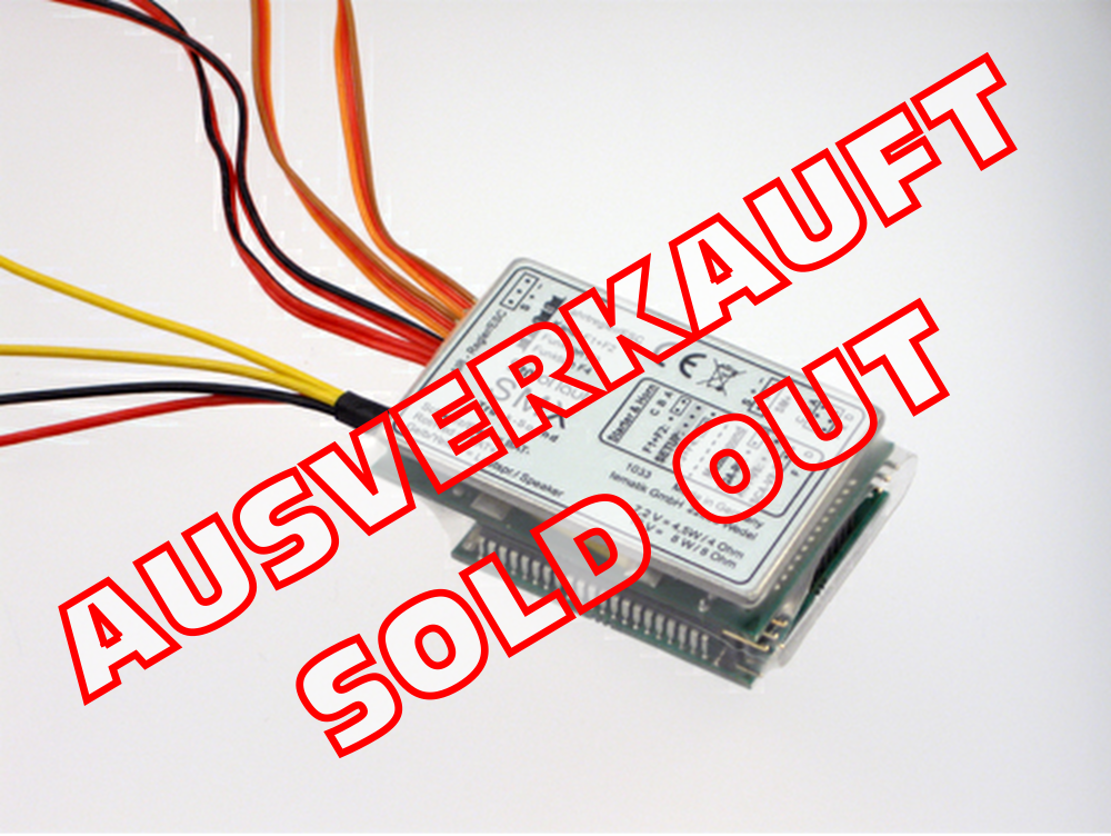 Schaltgeräusche und Warnton mit K15/30/40/60. Rückfahr-Warnton und bremssynchrone Druckluft auch mit M20+ und S20 verfügbar. Diesbezüglich eingeschränkter Funktionsumfang mit Fahrtreglern anderer Hersteller