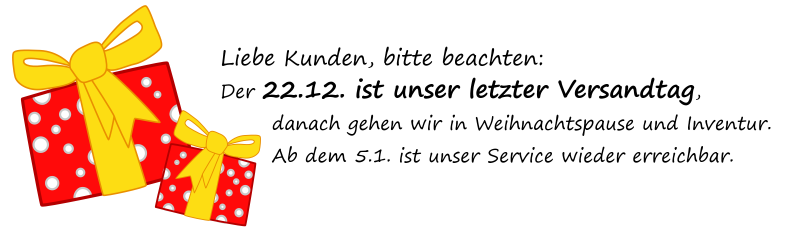 Bitte beachten: Wir haben kein Ladengeschäft, sind also nicht auf Spontanbesuche eingestellt.
